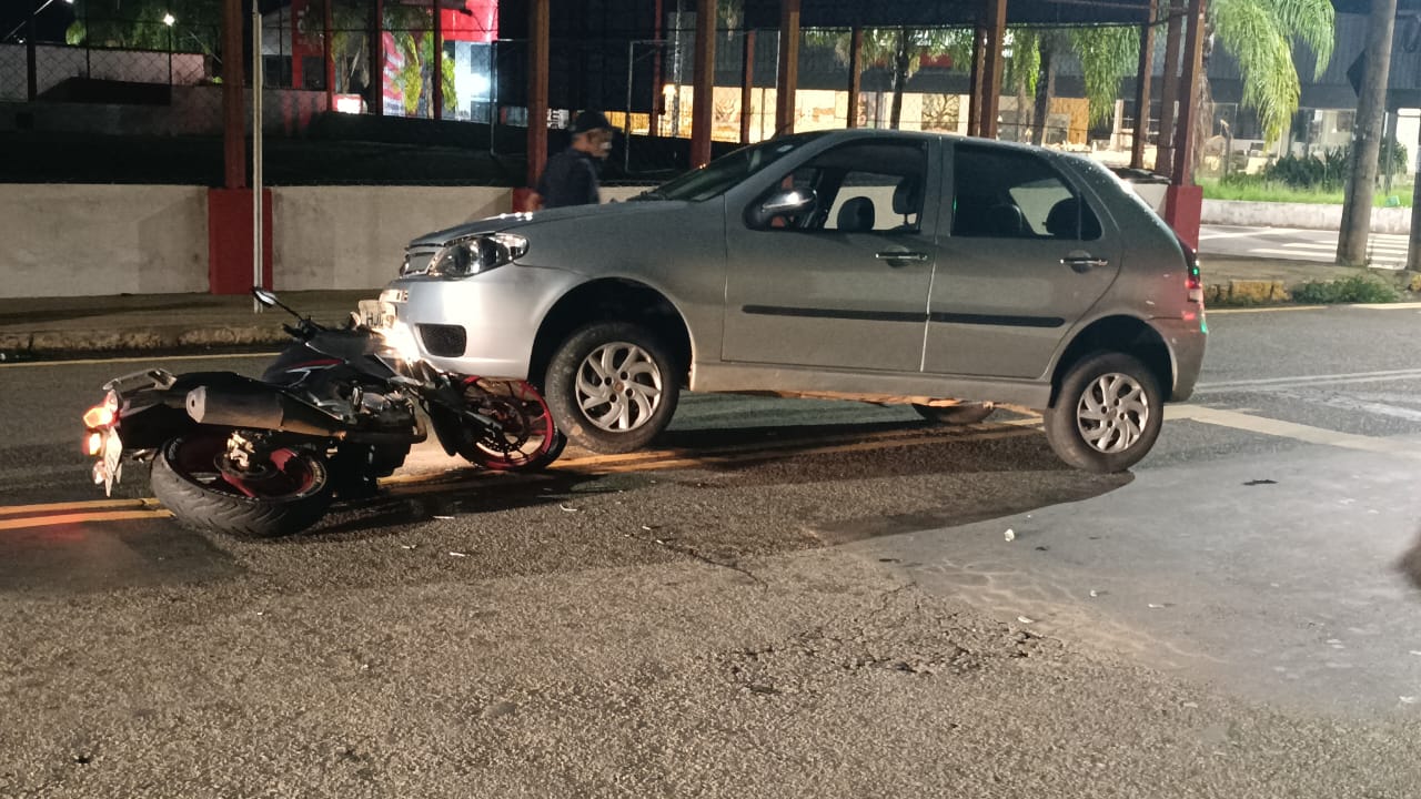 Colisão em cruzamento movimentado resulta em cena impressionante, mas estado de saúde do motociclista ainda é desconhecido