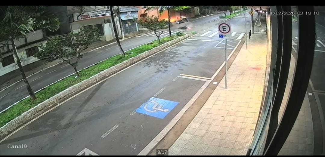 Câmeras registram grave acidente entre carro e moto na madrugada deste domingo em Alfenas