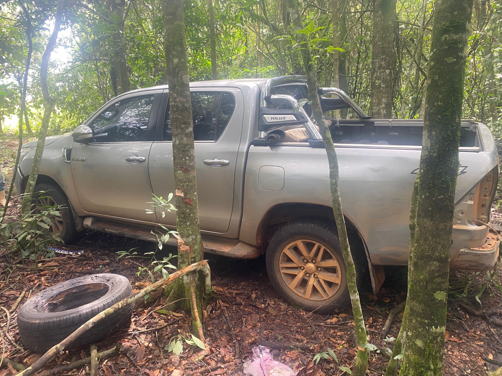 Caminhonete furtada é recuperada na zona rural próximo à Fazenda Pitangueiras