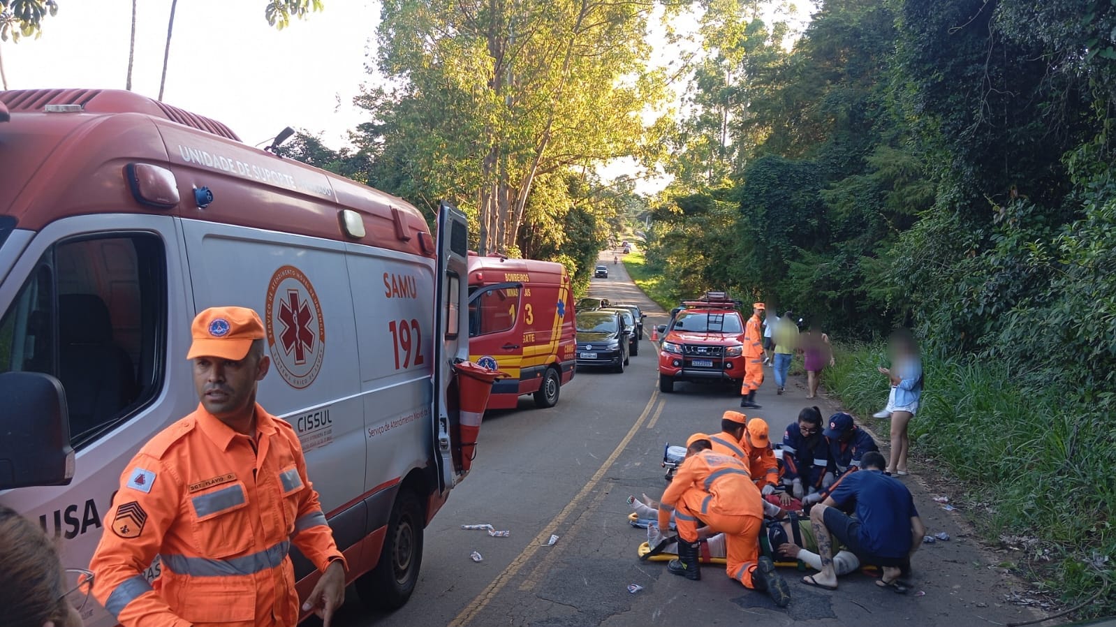 Casal sofre queda na rodovia, recebe atendimento no local e é encaminhado ao hospital sem fraturas aparentes
