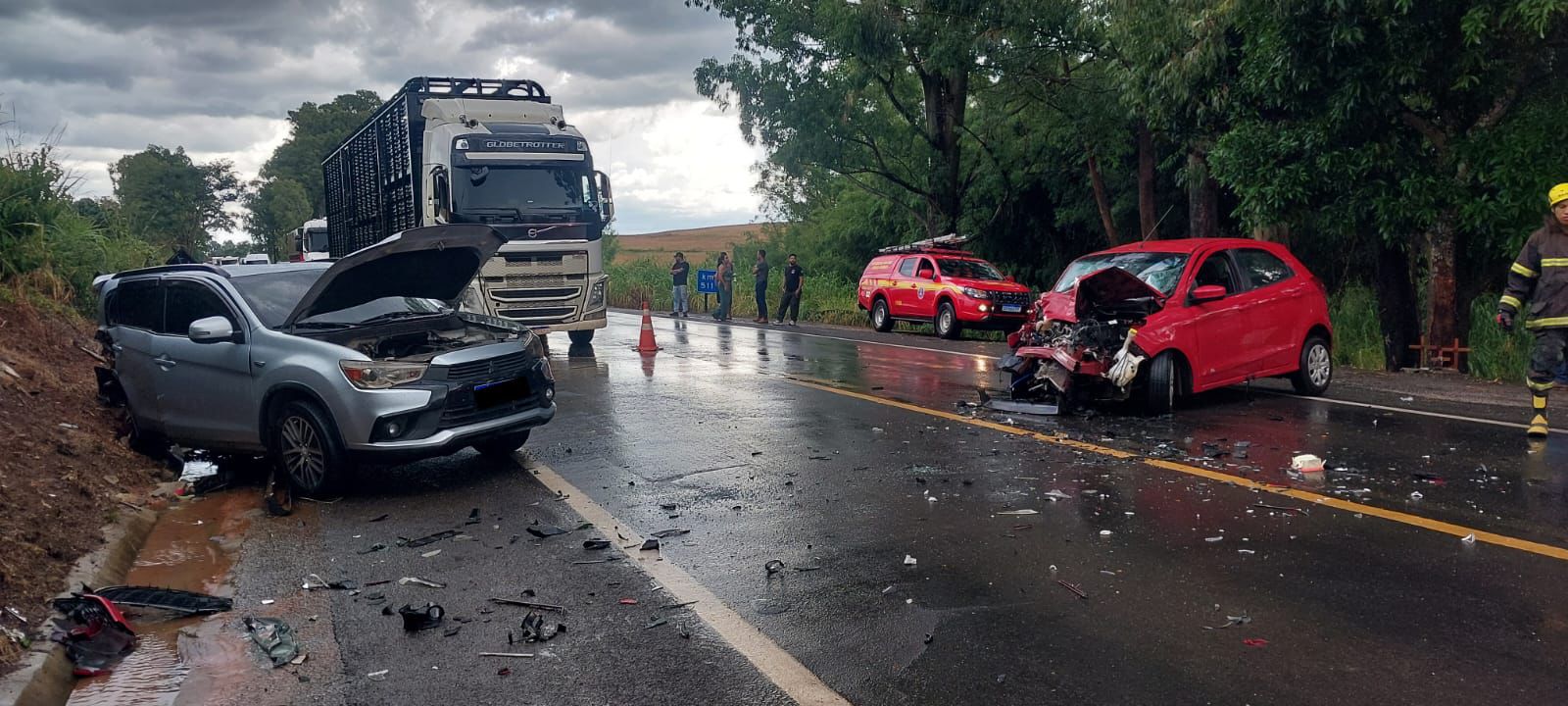 Colisão entre dois veículos ocorreu sob forte chuva; uma vítima ficou inconsciente com suspeita de traumatismo craniano
