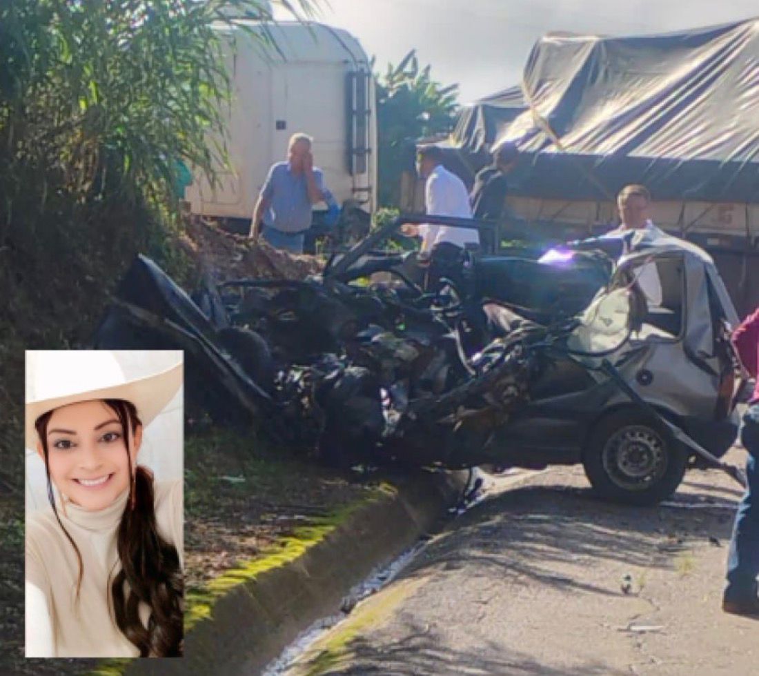 TRAGÉDIA NA BR-146: Moradora de Muzambinho morre em violenta colisão frontal entre carro e carreta