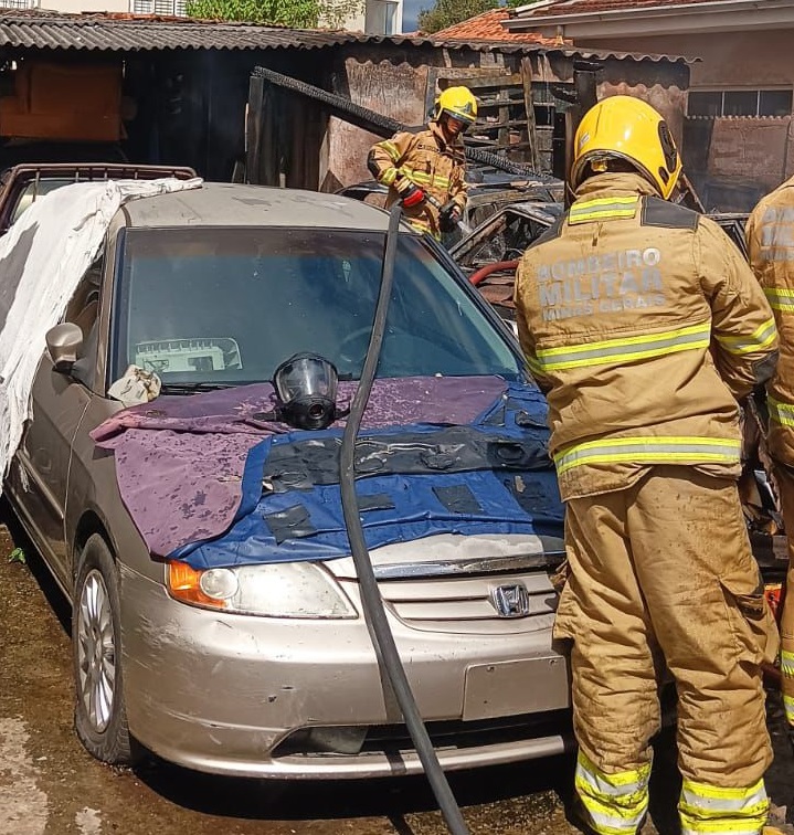 Incêndio em residência destrói veículos e mobiliza Bombeiros em Poços de Caldas
