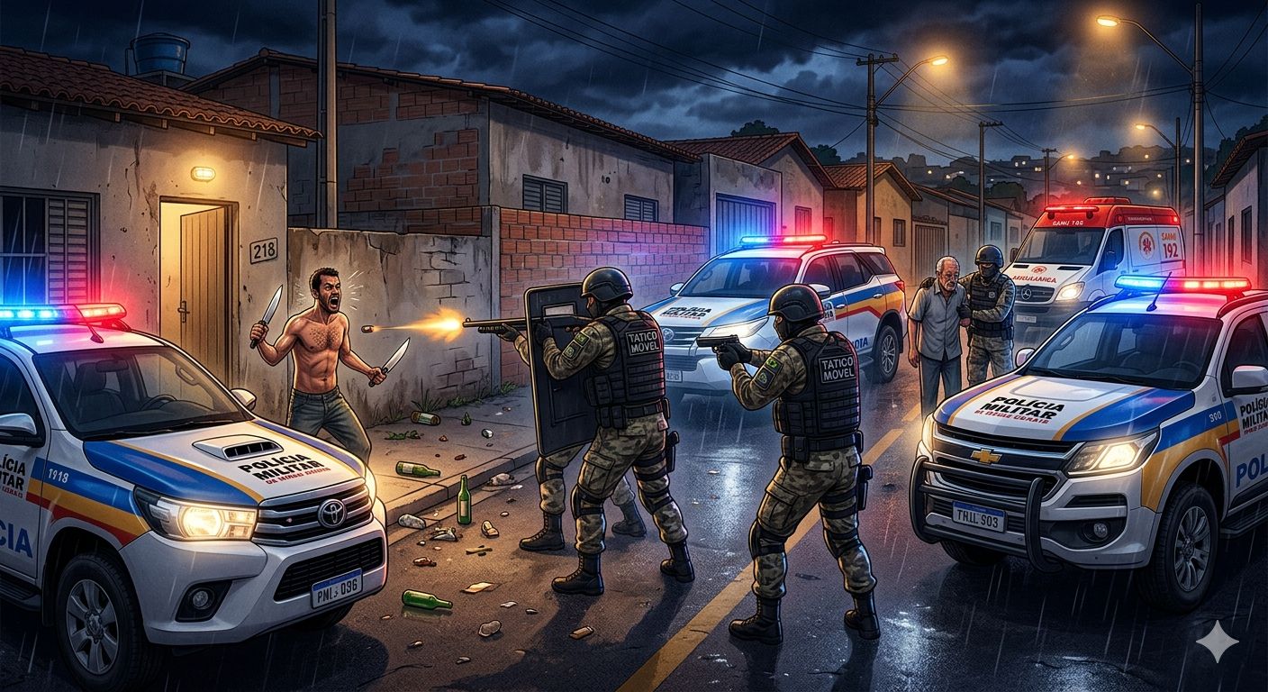 Noite de caos em Alfenas termina com suspeito baleado e internado em estado gravíssimo após tentativa de fratricídio e confronto com o Tático Móvel