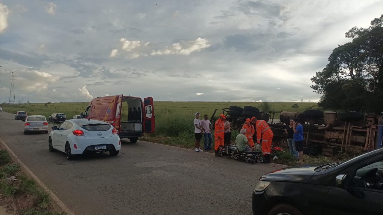O acidente ocorreu no Distrito Industrial; o veículo perdeu o freio em uma subida, atingiu uma picape de ré e tombou na lateral da via.