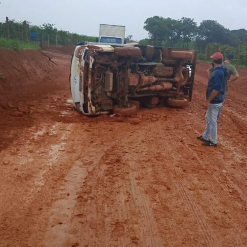 Na manhã desta quarta-feira (10/12), um caminhão tombou e interditou completamente a estrada que liga Campos Gerais ao distrito de Córrego do Ouro, no Sul