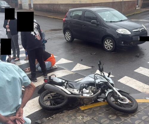Um acidente de trânsito, envolvendo um carro e uma motocicleta, ocorreu na tarde desta quarta-feira (10/12) na rua Tiradentes, em Alfenas, no Sul de Minas.