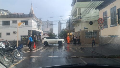 Na tarde desta segunda-feira (01/12), um acidente envolvendo um carro e uma moto foi registrado no centro de Alfenas, especificamente no cruzamento da Rua Juscelino