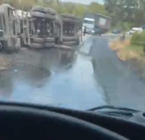 Na tarde desta quarta-feira (08/12), a MGC-267, no km 472 em Campestre, sofreu uma interdição total nos dois sentidos após o tombamento de uma carreta