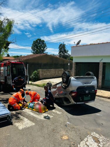 Neste domingo, por volta das 16h50, um acidente envolvendo um carro e uma motocicleta mobilizou as equipes do Corpo de Bombeiros e do SAMU em