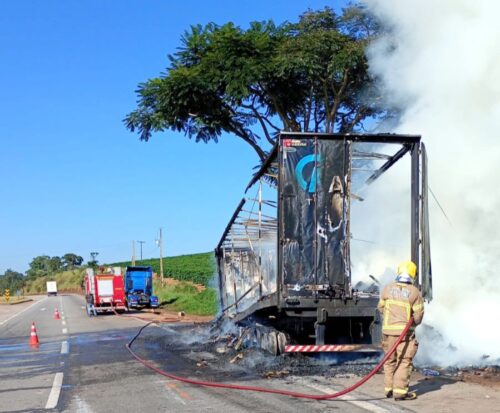 Uma carreta carregada com macarrão foi parcialmente destruída por um incêndio na madrugada desta quinta-feira (16), na rodovia federal BR-381. A ocorrência foi atendida pelo