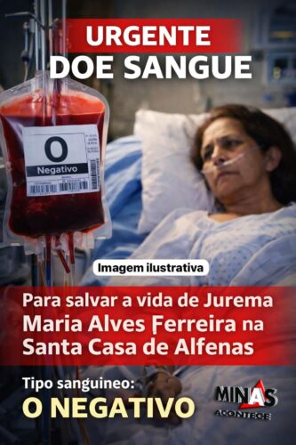 Um apelo urgente por doação de sangue mobiliza familiares e amigos de Jurema Maria Alves Ferreira, que necessita realizar uma cirurgia na Santa Casa de