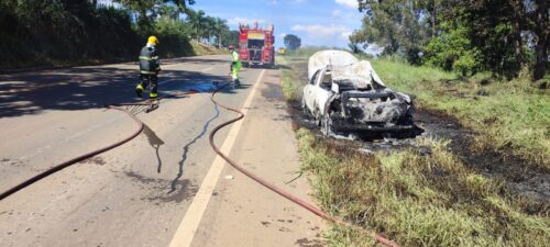 Um incêndio em um veículo funerário mobilizou o Corpo de Bombeiros na manhã desta quinta-feira (16), por volta das 11h49, na Rodovia BR-491, nas proximidades