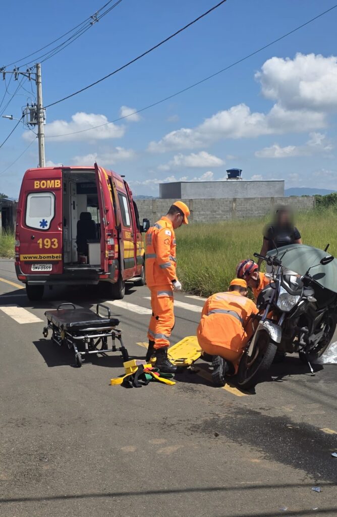De acordo com os bombeiros, a colisão aconteceu por volta das 11h. Com o impacto, o condutor da motocicleta, um jovem de 21 anos, foi arremessado ao solo e precisou de atendimento imediato das equipes de resgate.