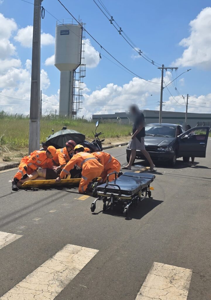 Motociclista de 21 anos foi socorrido com dores na coluna após colisão no Jardim Nova Alfenas