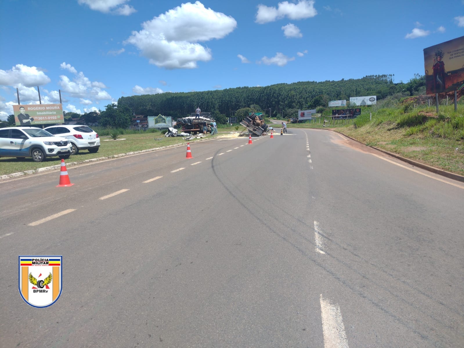 O local foi sinalizado pela PMRV até a remoção do caminhão.