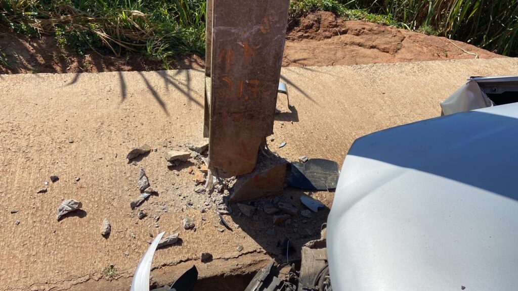 Carro bate contra poste e deixa mulher ferida em Varginha