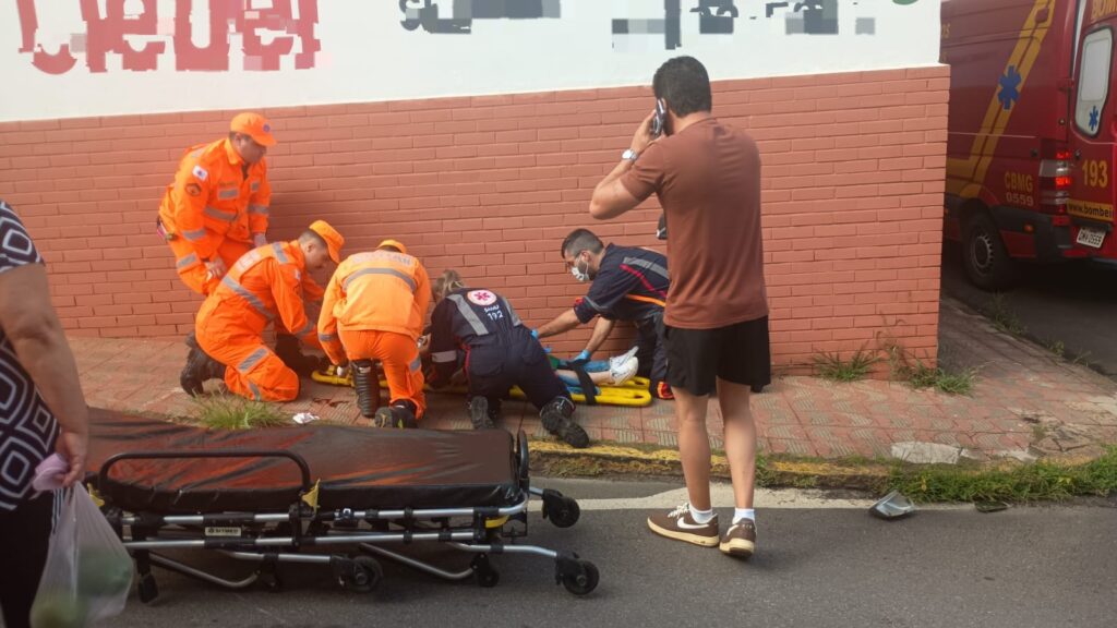 Vítima sofreu ferimentos na face e foi socorrida consciente pelos Bombeiros com apoio do SAMU