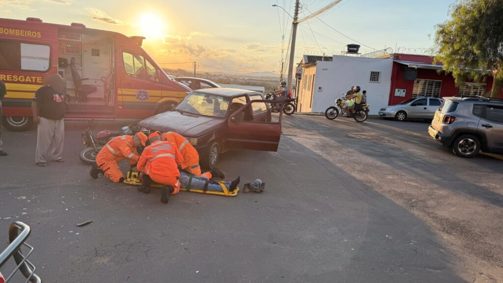 Uma colisão entre uma motocicleta e um carro foi registrada no final da tarde de hoje, às 18h, no cruzamento da Avenida Benjamin Constant com a Rua Castro Alves, em Alfenas. O acidente envolveu um motociclista de 49 anos, que sofreu ferimentos leves, incluindo escoriações e dores devido à queda.