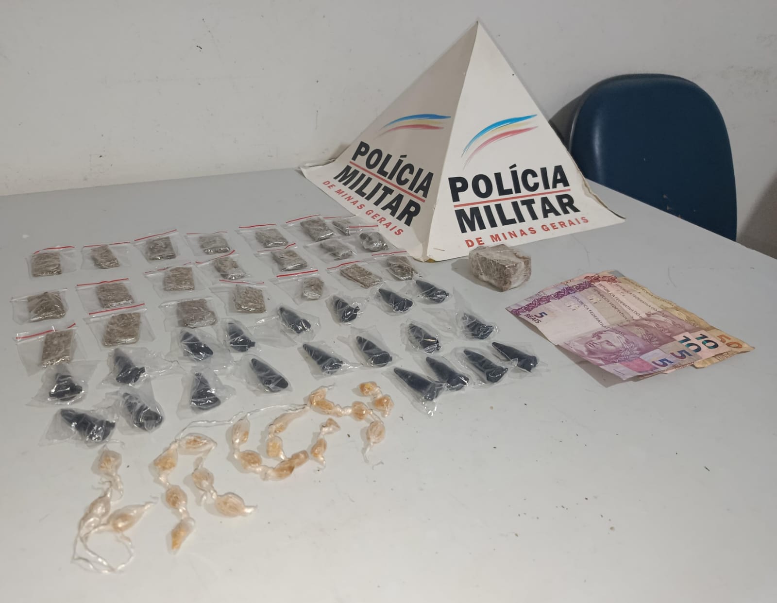 Durante a "Operação Batida Policial", suspeito tentou fugir e dispensar entorpecentes ao notar a presença da viatura, mas foi capturado pela Polícia Militar com maconha, cocaína e crack.