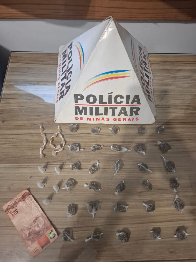 Equipes do Comando Tático desmantelam tráfico no bairro Santa Luzia, apreendendo 19 buchas de maconha e 8 pedras de crack.