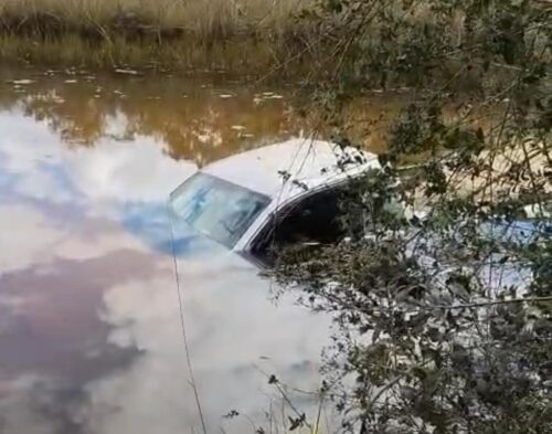ALFENAS, MG – Uma cena inusitada surpreendeu os moradores que trafegavam pela estrada velha entre Alfenas e Fama na manhã deste sábado (12/07). Uma caminhonete Saveiro foi encontrada parcialmente afundada em um açude às margens da via.