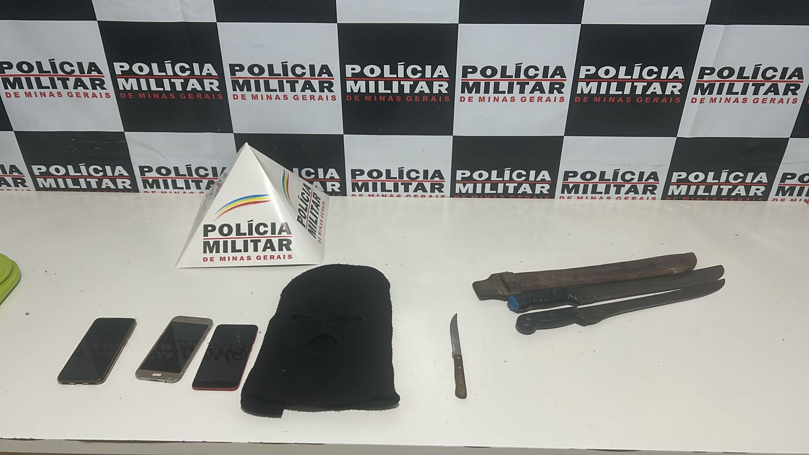 De acordo com os policiais, ao tentarem abordar o carro, os suspeitos desobedeceram as ordens de parada, porém foram interceptados posteriormente. Durante a abordagem, a equipe encontrou com os indivíduos uma balaclava, dois facões, uma faca e três aparelhos celulares, itens que levantaram a suspeita de que o roubo estava prestes a ser cometido.