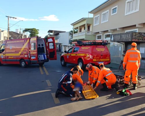 Neste domingo, por volta das 16h50, um acidente envolvendo um carro e uma motocicleta mobilizou as equipes do Corpo de Bombeiros e do SAMU em