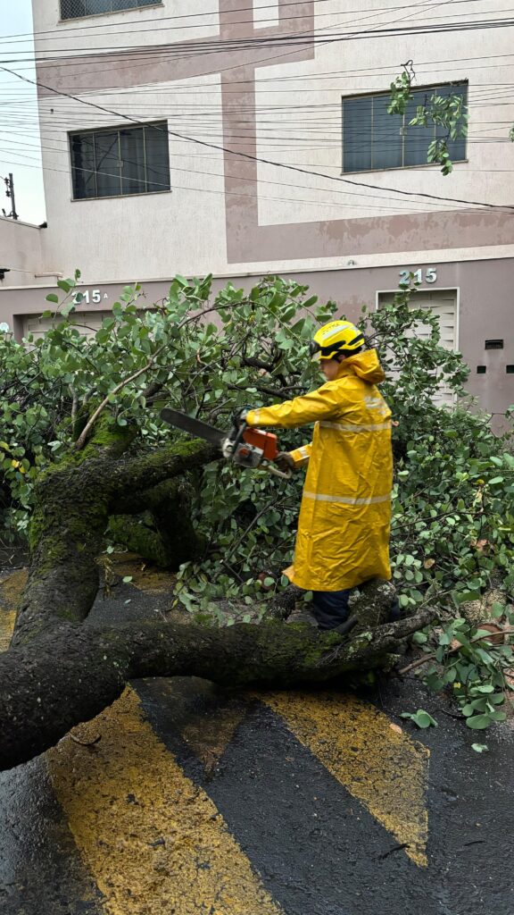 Ao chegarem ao local, os bombeiros verificaram que a árvore caída obstruía completamente a pista. Para assegurar a segurança de todos, a equipe de salvamento realizou o isolamento da área. Em seguida, utilizando motosserras e equipamentos de proteção individual, os militares realizaram um corte controlado da árvore, fragmentando o tronco e removendo os galhos que impediam o fluxo de veículos.