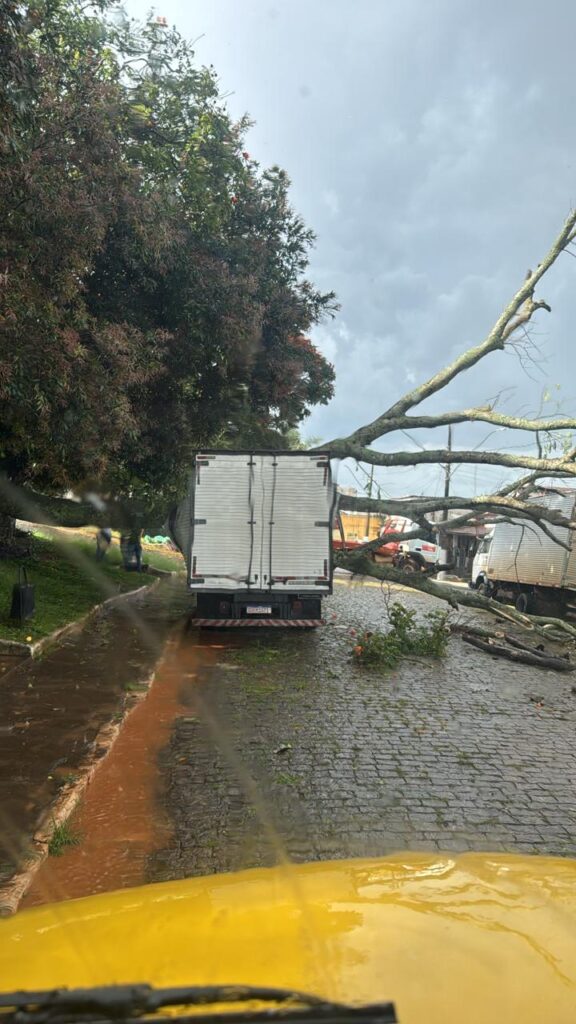 Na tarde desta terça-feira (27), Alfenas, no Sul de Minas, enfrentou uma intensa tempestade que resultou na queda de uma árvore na Praça da Estação. O incidente ocorreu enquanto o caminhão baú estava estacionado, causando danos significativos à estrutura do veículo.